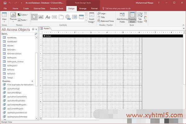 您现在可以将查询视为其记录源.我们现在已将此表单绑定到数据库中的对象,在本例中为qryEmployeesData.我们现在可以首先向此表单添加一些控件并添加任何一个控件,转到"设计"选项卡并从控件组中查看选项.