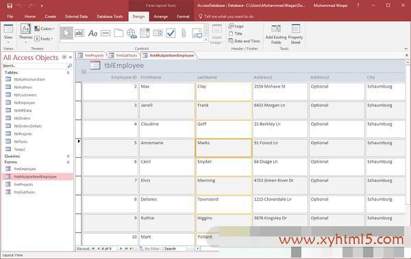 在Access中,有一些基本方法可以使用内置主题,颜色和字体样式格式化表单,自定义填充颜色和着色备用行.现在让我们打开 frmEmployees .