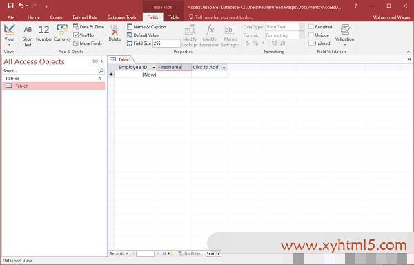现在让我们将短文作为数据键入所有这些字段并在Access中打开一个空白数据库.