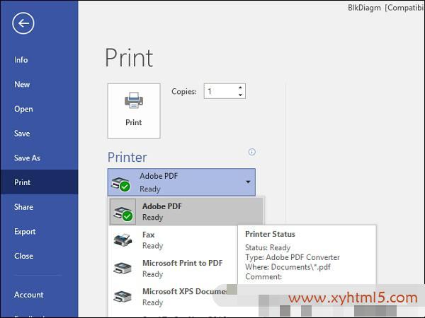 如果您安装了兼容的软件打印机,如Adobe PDF或Microsoft Print to PDF,也可以直接打印到PDF.如果您需要对PDF文档(例如PDF版本或兼容性属性)进行精细控制,则可能需要使用此项.