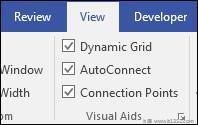 使用SmartShapes的一个优点是能够快速轻松地连接塑造前四个最喜欢的形状. AutoConnect有助于从前四位快速选择形状,并立即建立与新形状的连接.有时,您可能不需要此功能.在这种情况下,您只需从"视图"选项卡的"视觉帮助"部分取消选中"自动连接"复选框即可禁用"自动连接"功能.