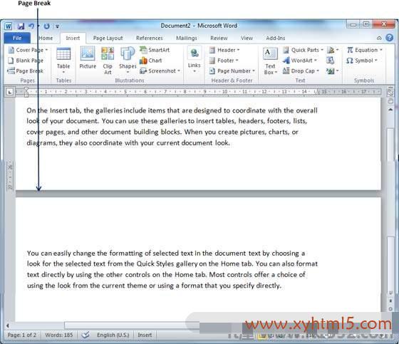 在本章中,我们将讨论如何在Word 2010中插入分页符.当当前页面填充文本时,Microsoft Word会自动启动新页面,但您可以插入分页符以强制Word在新页面上启动文本.您可以使用鼠标或键盘插入分页符.