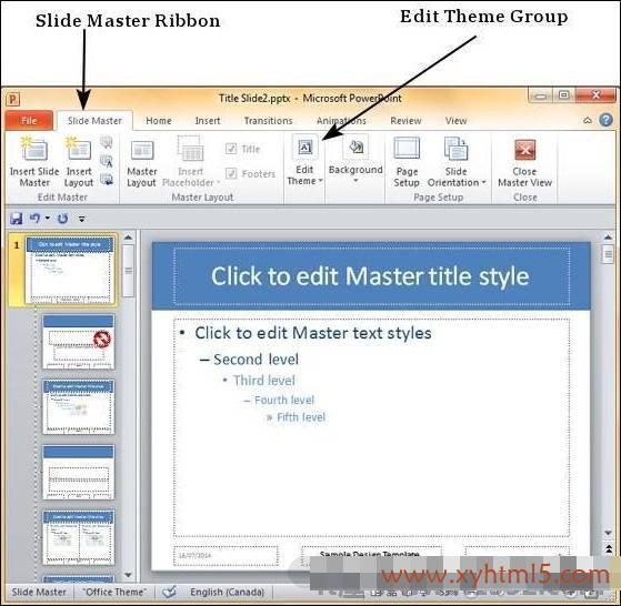 第2步 : 转到幻灯片母版功能区下的编辑主题组.