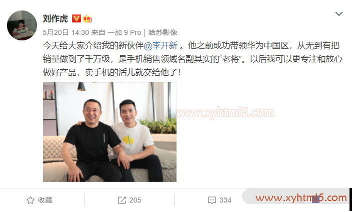 5月20日,一加科技创始人刘作虎通过微博宣布,前荣耀销售副总裁、360手机总裁李开新加盟一加,担任一加手机副总裁职务。