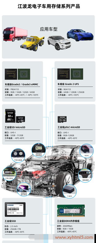 江波龙电子近年来在车用存储市场大力度布局及拓展,无论是从汽车前装到后装,还是高铁、公交系统应用,其车用存储产品线均有覆盖,深入汽车的每一个“器官”。如今,江波龙电子的汽车存储eMMC、UFS、工业级SSD、工业级DDR4内存模组、工业级存储卡、汽车个人云存储、车载数据备份盘以及技术定制产品已在车用存储市场崭露头角。