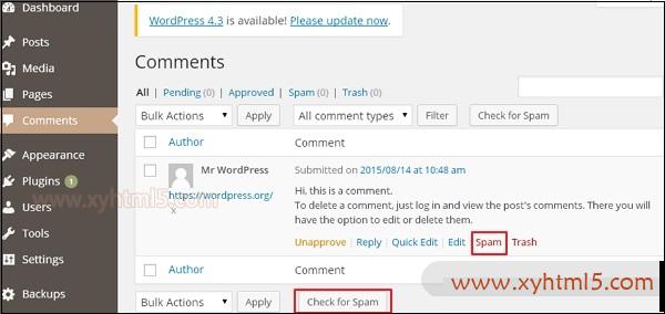 步骤(9):从现在开始,你的博客使用Akismet防垃圾邮件功能。能够检查的评论,在您的博客的垃圾邮件,从博客管理区的垃圾邮件->评论手动标记评论。