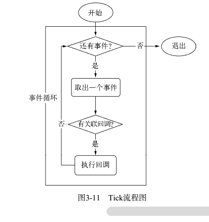 不管是server.listen还是fs.open,他们在开启一个 node 服务(进程)的时候,Node 会创建一个 while(true)的循环,这个循环就是事件循环。每执行一次循环体的过程,我们称之为 Tick。每个 Tick 的过程就是查看是否有事件待处理,如果有,就取出事件及其相关的回调函数。如果存在关联的回调函数,就执行。然后进入下一个循环,如果不再有事件处理,退出进程。